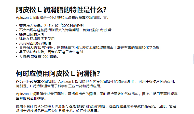 英國APIEZON阿佩佐高真空油脂 L型有機硅脂密封脂潤滑油脂25g 50g
