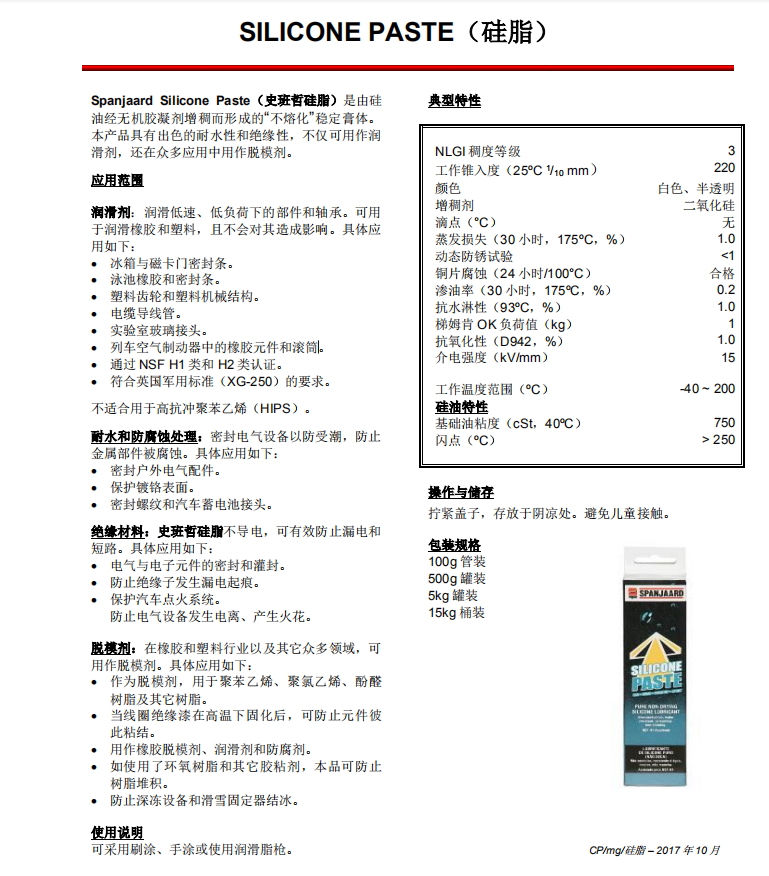 正品南非史班哲Spanjaard硅脂小支牙膏管包裝/低溫低速/軸承橡膠