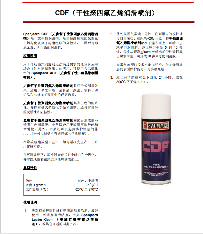 Spanjaard CDF史班哲干性聚四氟乙烯潤滑噴劑防靜電干性潤滑噴劑