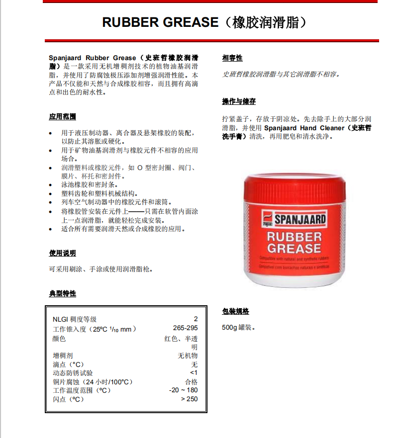 SpanJaard Rubber Grease史班哲橡膠潤(rùn)滑脂 植物油基潤(rùn)滑脂礦物油