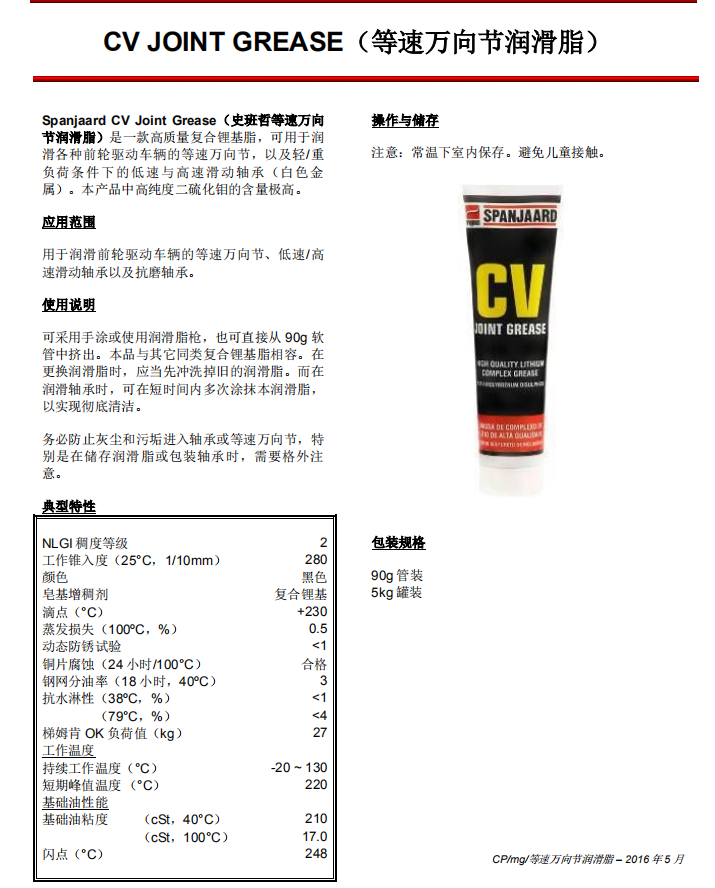 Spanjaard CV Joint Grease史班哲等速萬向節(jié)潤滑脂抗磨軸承潤滑