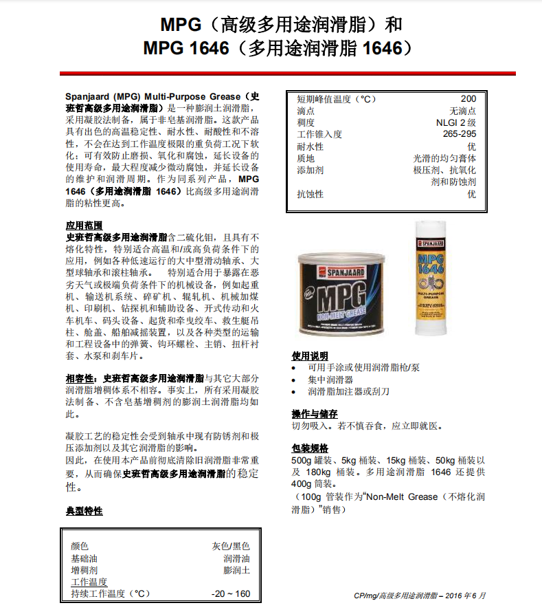 Spanjaard MPG1646 Multi-Purpose Grease史班哲高級多用途潤滑脂