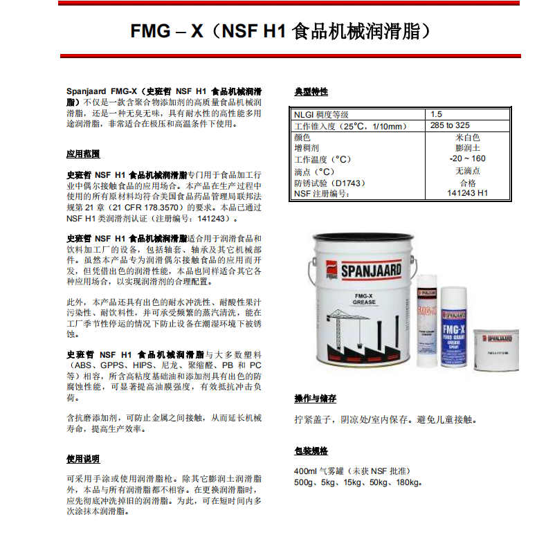 進(jìn)口史班哲FMG-X食品級潤滑油導(dǎo)軌軸承齒輪潤滑脂多用途NSF 耐水