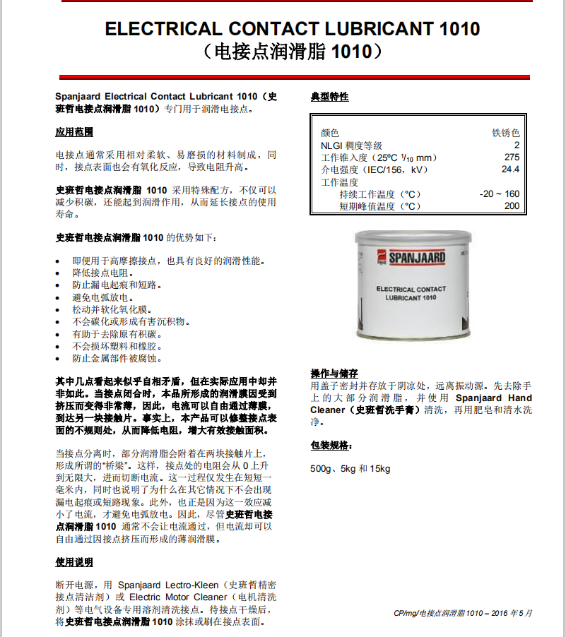 SpanjaardElectricalContact史班哲電接點潤滑脂1010重型開關(guān)潤滑