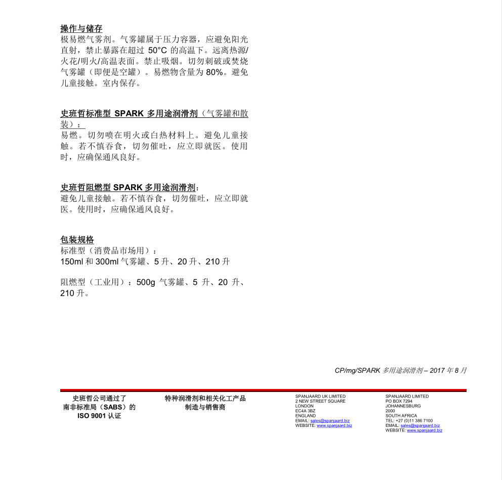 南非Spanjaard Spark(史班哲SPARK多用途多功能潤(rùn)滑噴劑)300ML