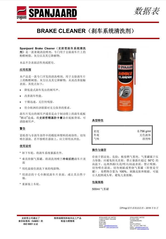 • 型號:???史班哲剎車系統(tǒng)清洗劑
